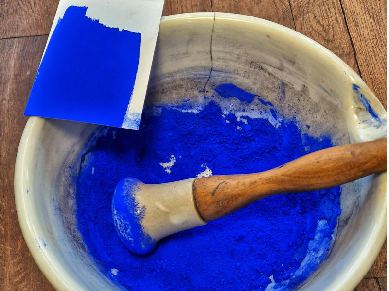 De laatste tijd hebben we veel vragen gekregen, of wij ook een blauwe verf konden maken van 100% pigment Ultramarijn blauw.